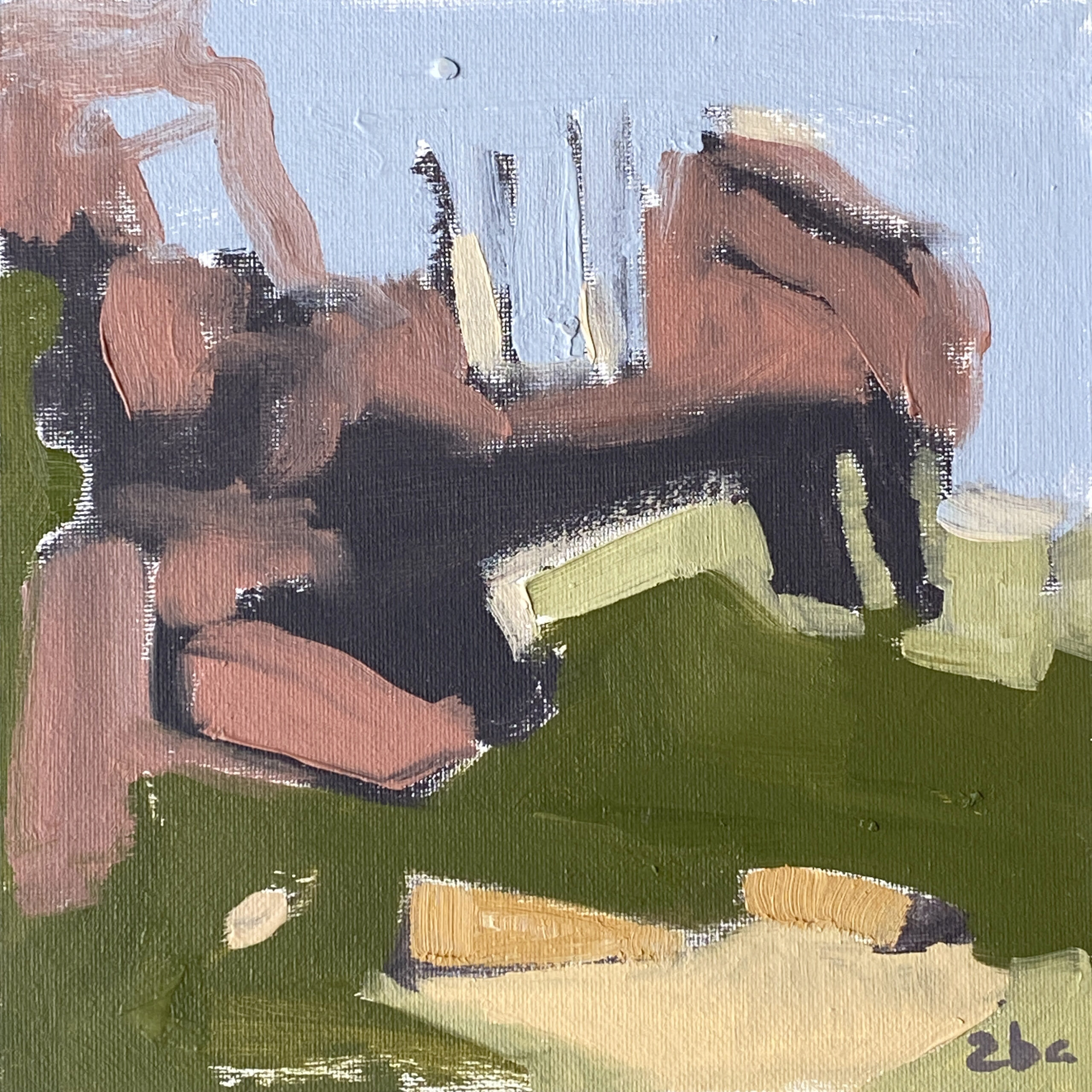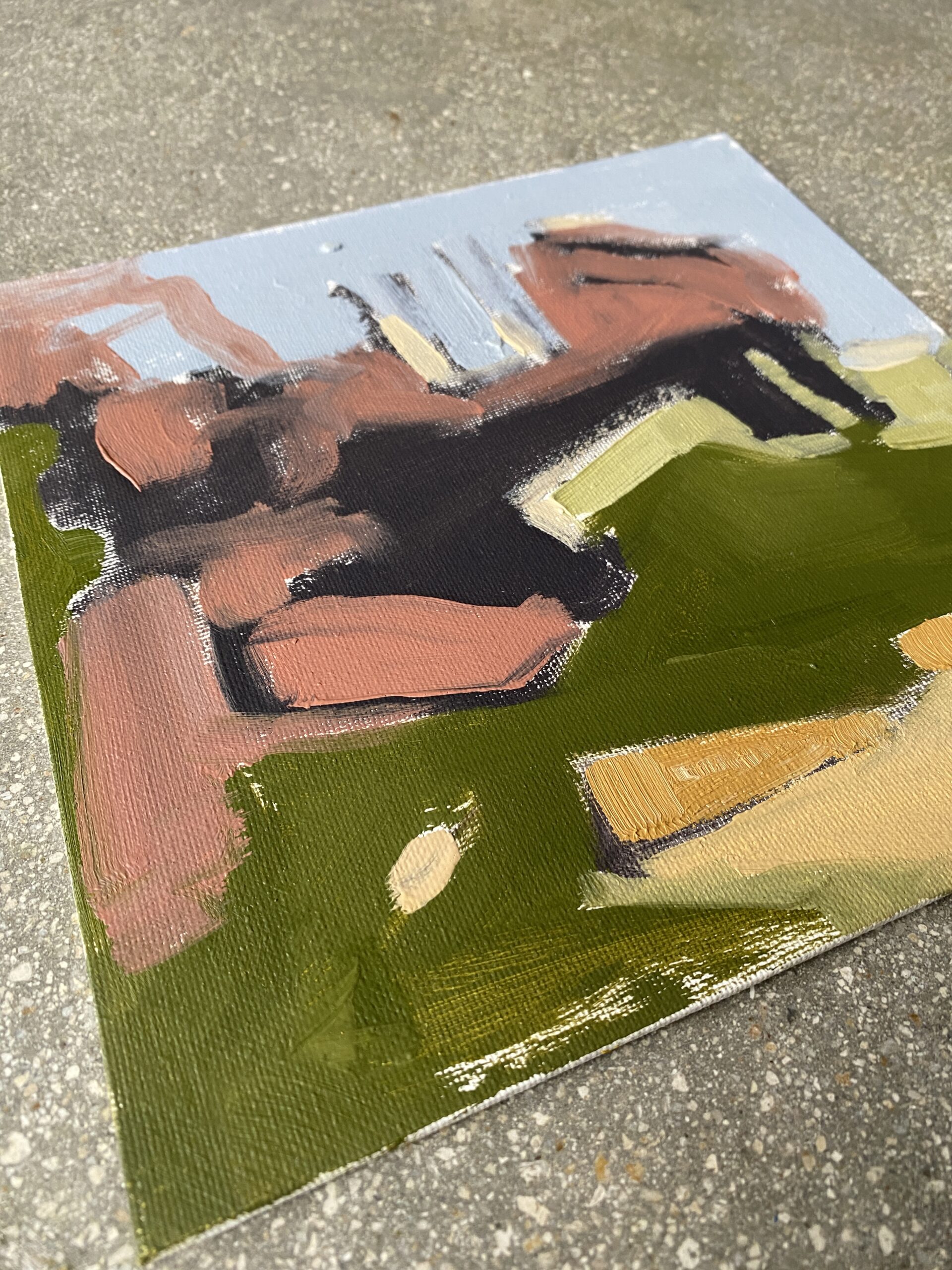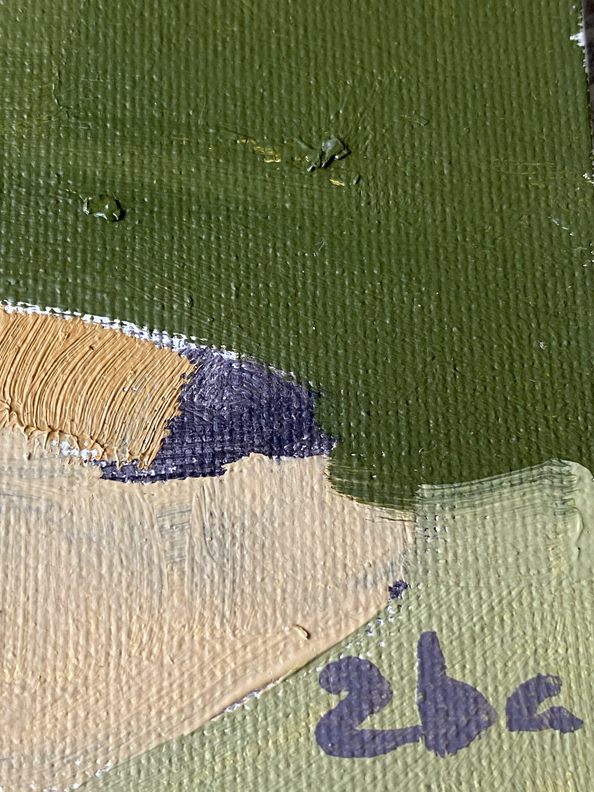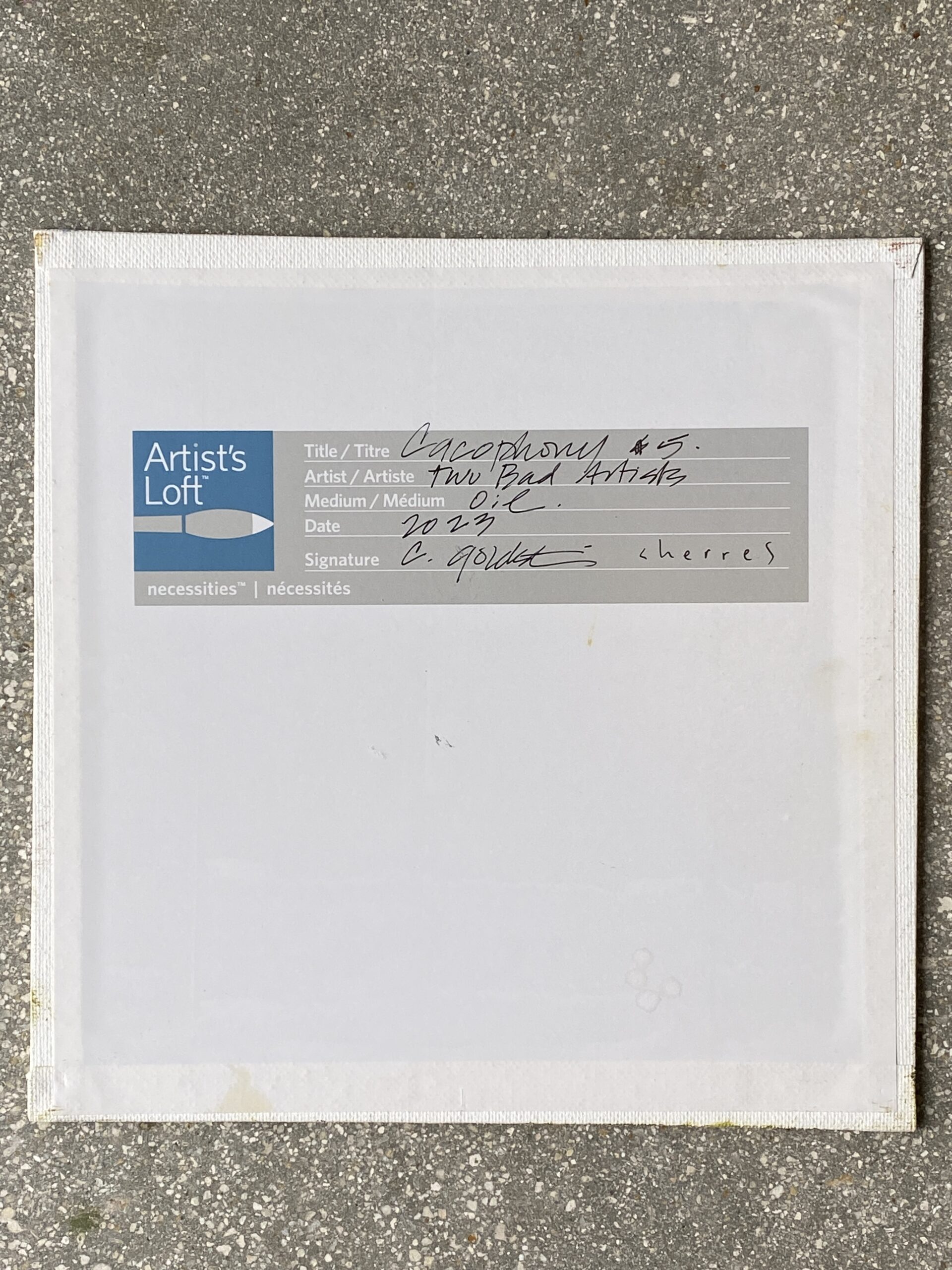 Original One of a Kind Oil Painting on on a small square canvas panel. A modern abstract work in different textures and tones. This piece is from a abstract series of work titled, Cacophony. Executed in a soft inviting palette of blues, greens and gold.